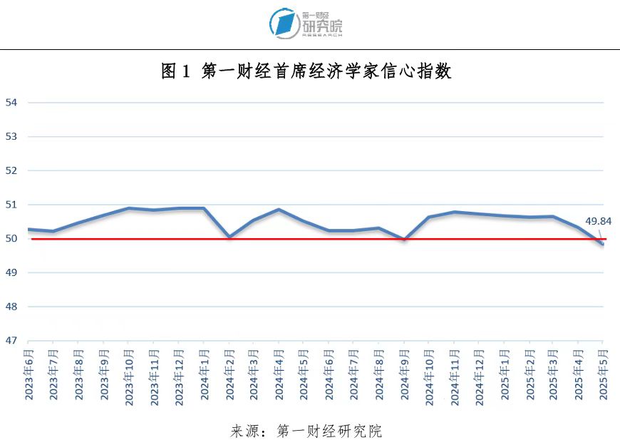 5月“第一财经首席经济学家信心指数”为49.84,回落至50荣枯线以下。